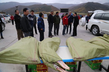 集團領導一行先后深入調水總干渠工程隧洞出口和進口段項目施工駐地,親切看望慰問節(jié)日期間堅守工作崗位的施工、質檢、監(jiān)理以及供電等廣大工程管理和施工技術人員,并向他們贈送了水果、肉類等慰問品。